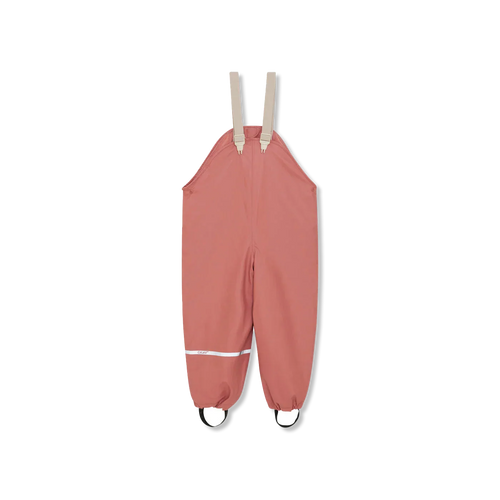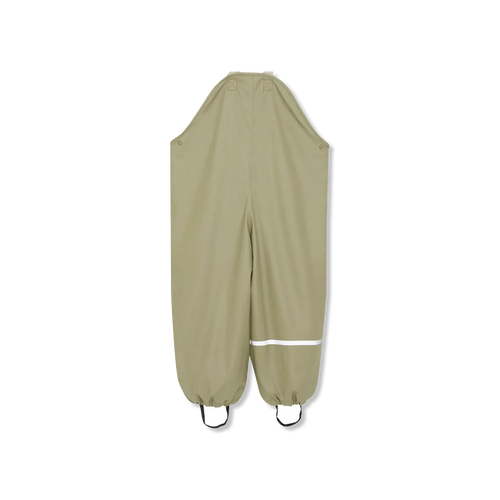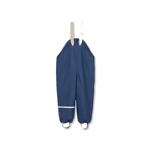Bis einschließlich Größe 104 sind die Regenhosen mit verstellbaren Hosenträgern und einer Kunststoffschnalle vorne ausgestattet.