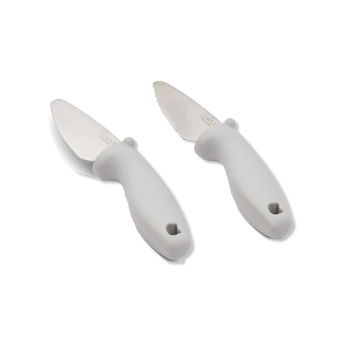 Set aus zwei Kinderküchenmessern aus 18/8-Edelstahl und Silikon.