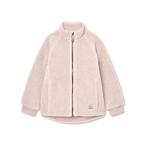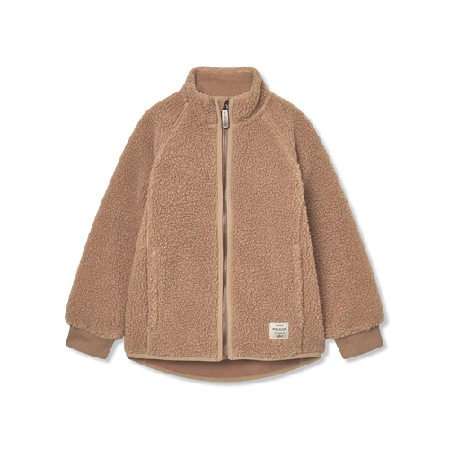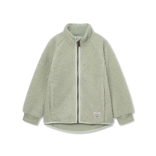 Weiche Teddyfleecejacke von MINI A TURE aus recyceltem Polyester mit weichem Fleecefutter.Die Jacke hat einen hohen Kragen und ist hinten etwas länger als vorne.
